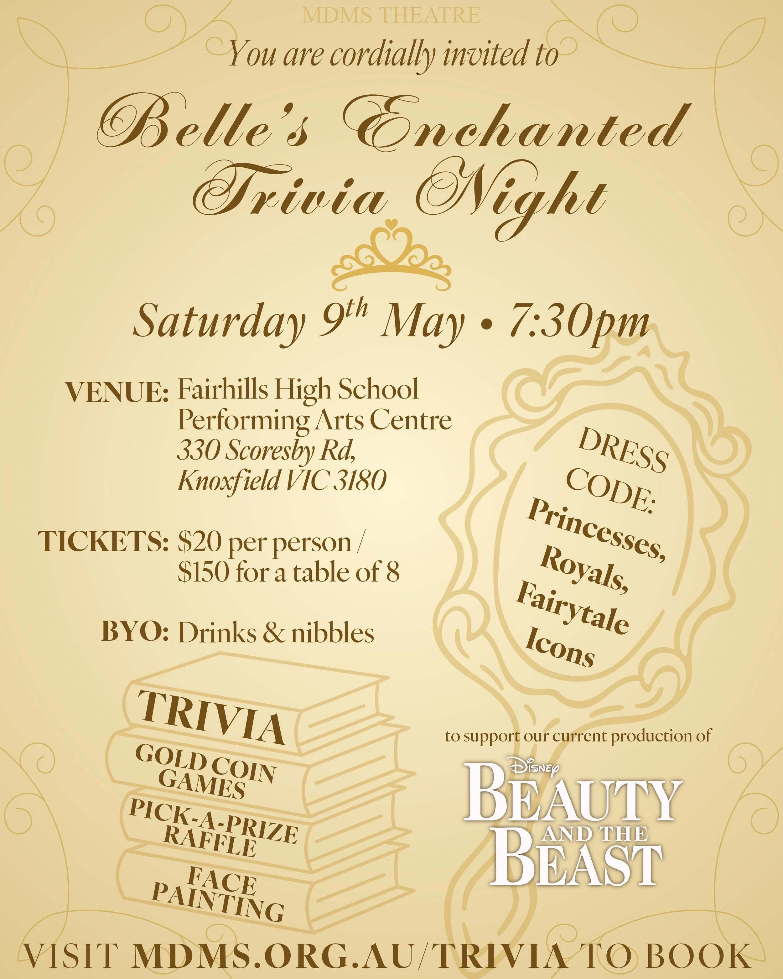 MDMS is hosting a trivia and games night to fundraise for our current production of BEAUTY AND THE BEAST!